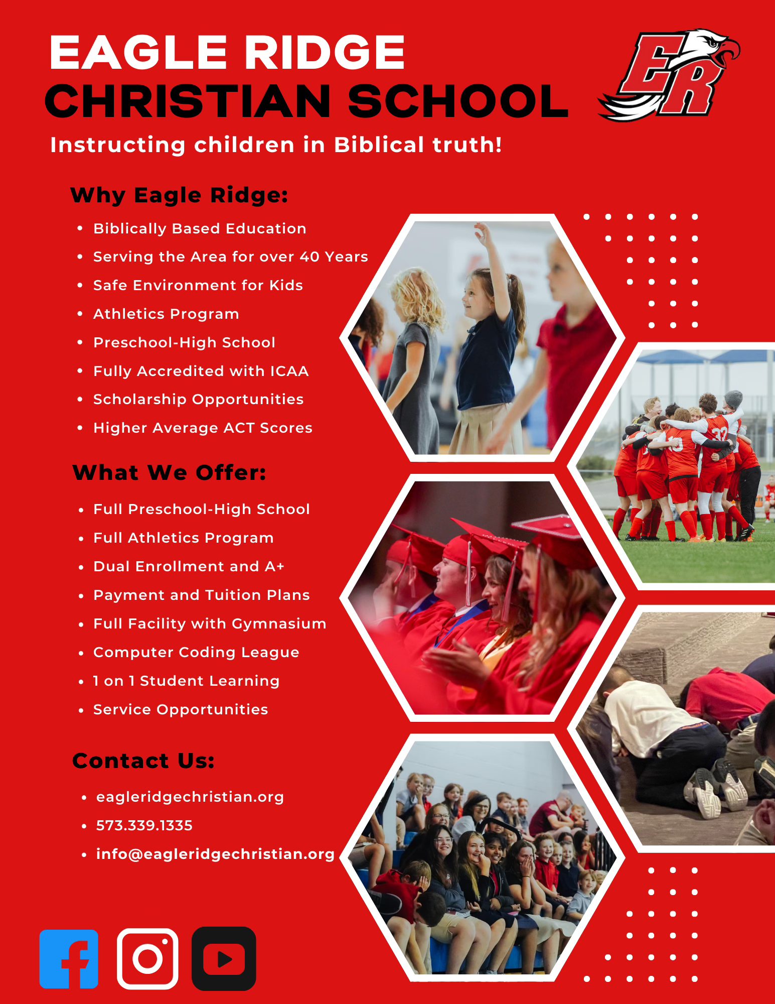 Why Choose Eagle Ridge? Sponsors Want to get in touch or schedule a tour? CONTACT US © 2025 Eagle Ridge Christian School | Designed By: Recruiters Websites
